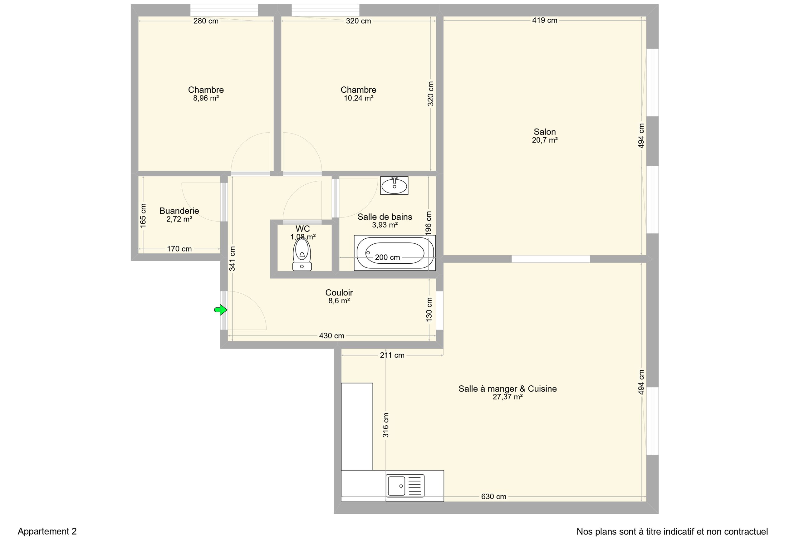 Plans 2D Détaillés : Agencement et Disposition Précise pour Biens Immobiliers